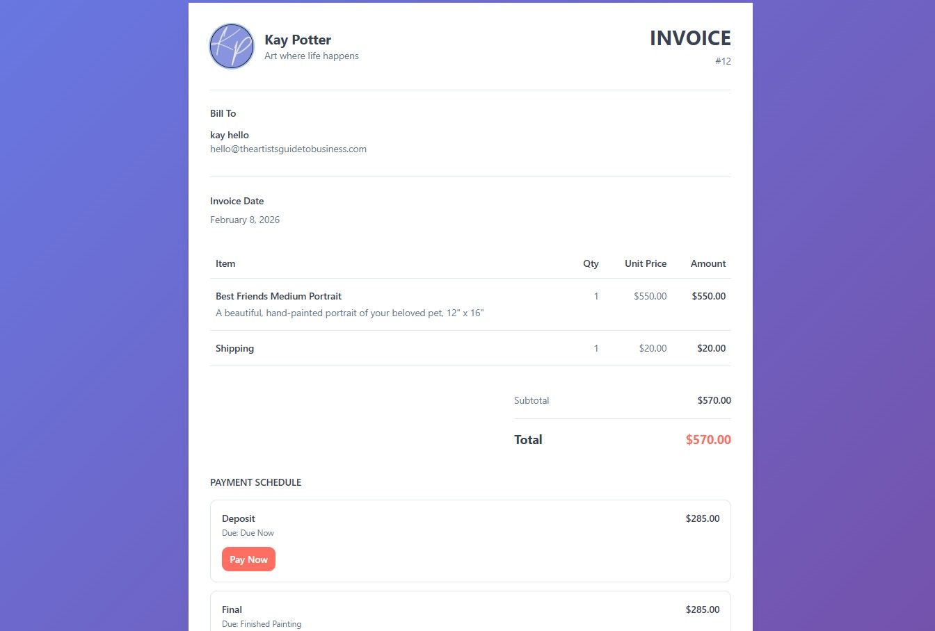One software that manages the complete workflow of your commission projects- from inquiry to deposit to shipped and delivered.